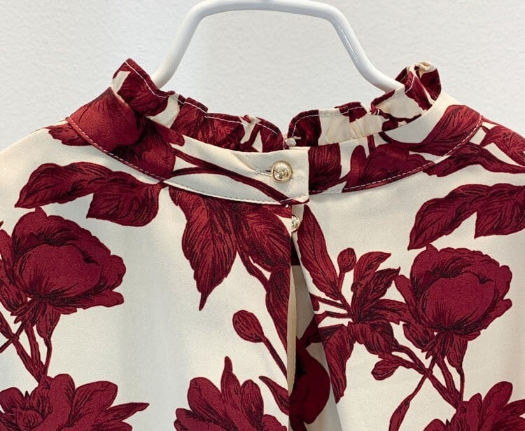チェストタイレトロブラウスとウエストスリムミドルスカートのセット商品です。