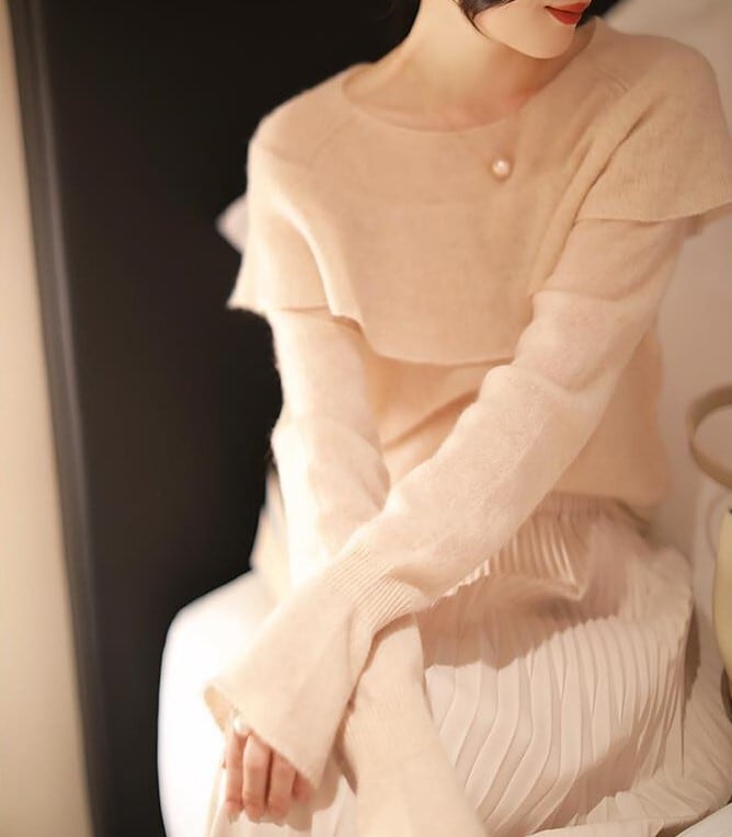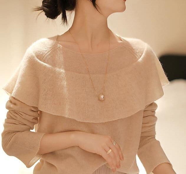 柔らかい素材とカラーが女性らしさを引き立たせます。