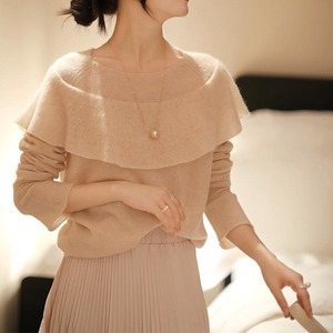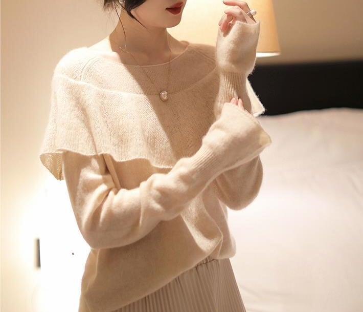 Flare sleeve elegant cape knit