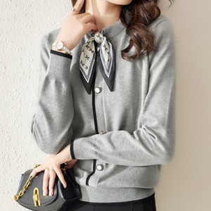 着用するだけでフェミニンな雰囲気が漂うチェストスカーフエレガントシングルブレストニット 。