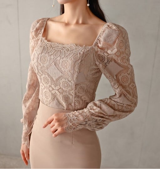 スクエアネックレースシャツ