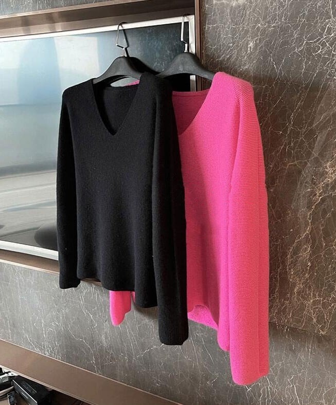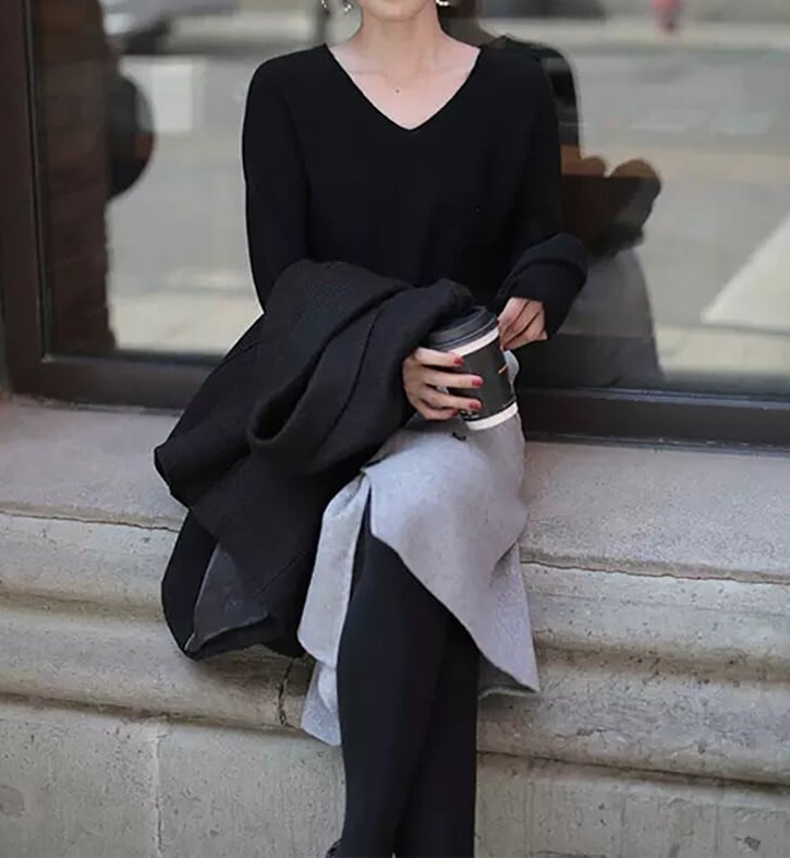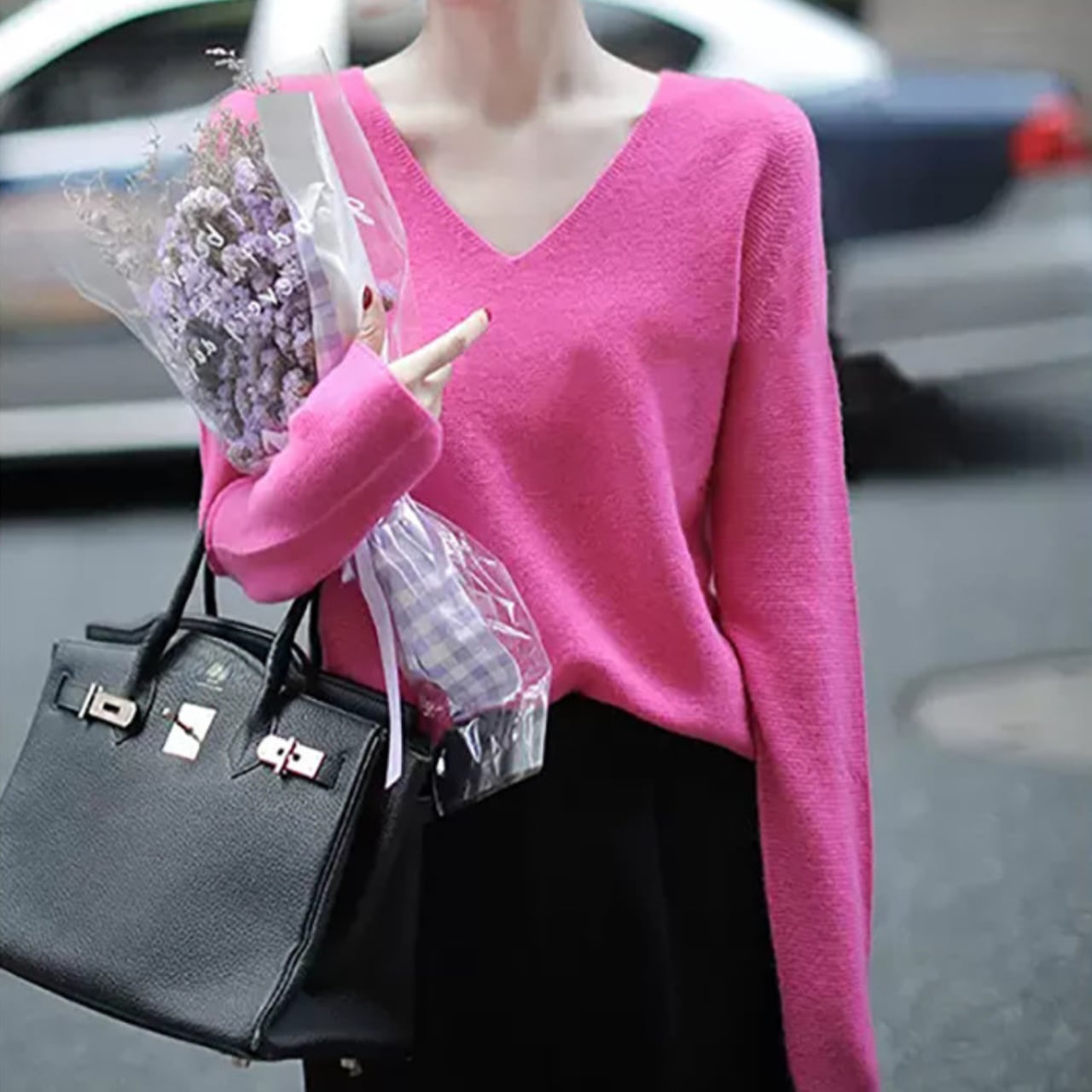 着用するだけでフェミニンな雰囲気が漂うVネックエレガントスリムニット。