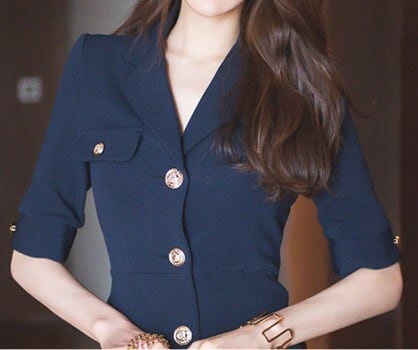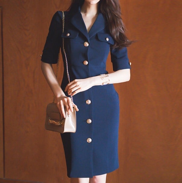 Suit collar elegant single breast middle dress