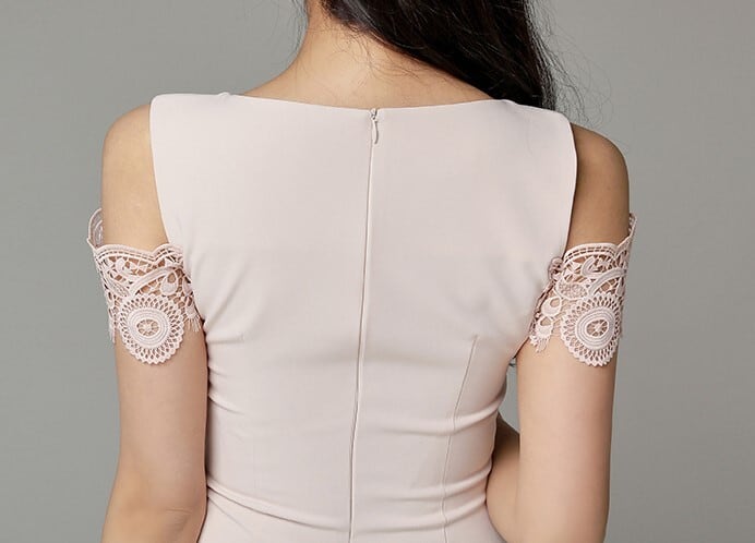 着用するだけでフェミニンな雰囲気が漂うスリーブレスエレガントレースステッチミドルドレス。