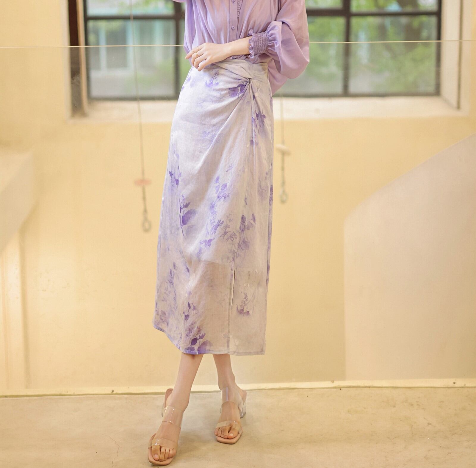 High waist elegant retro floral chiffon skirt 2023 春の新作