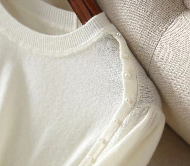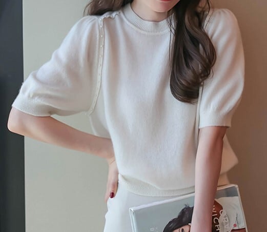 Puff sleeves elegant shoulder beads summer knit