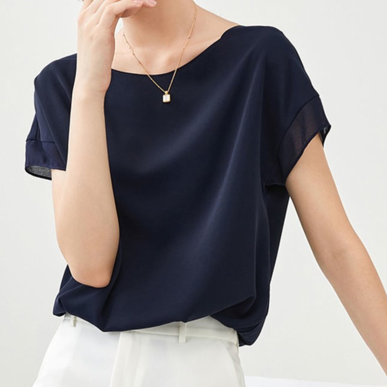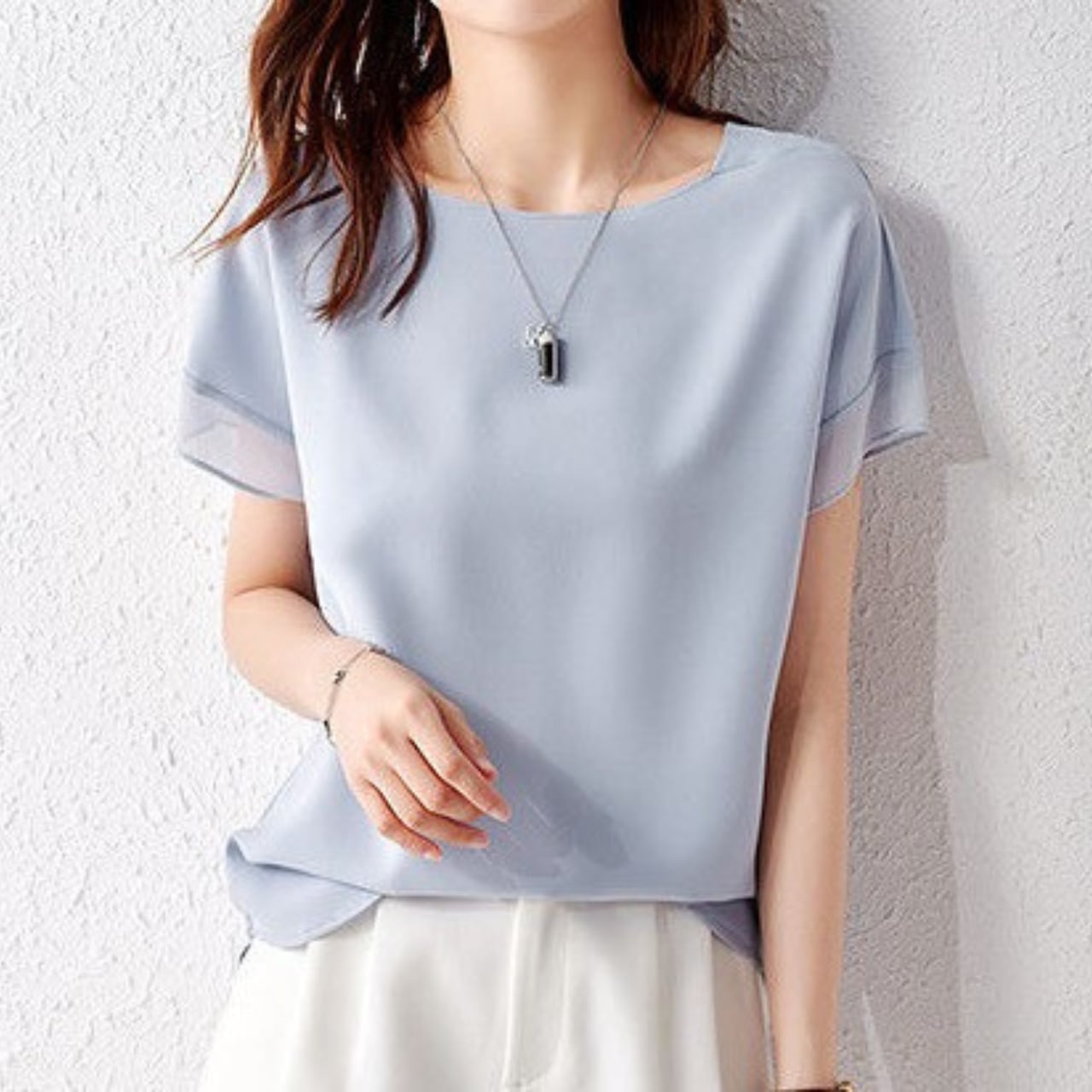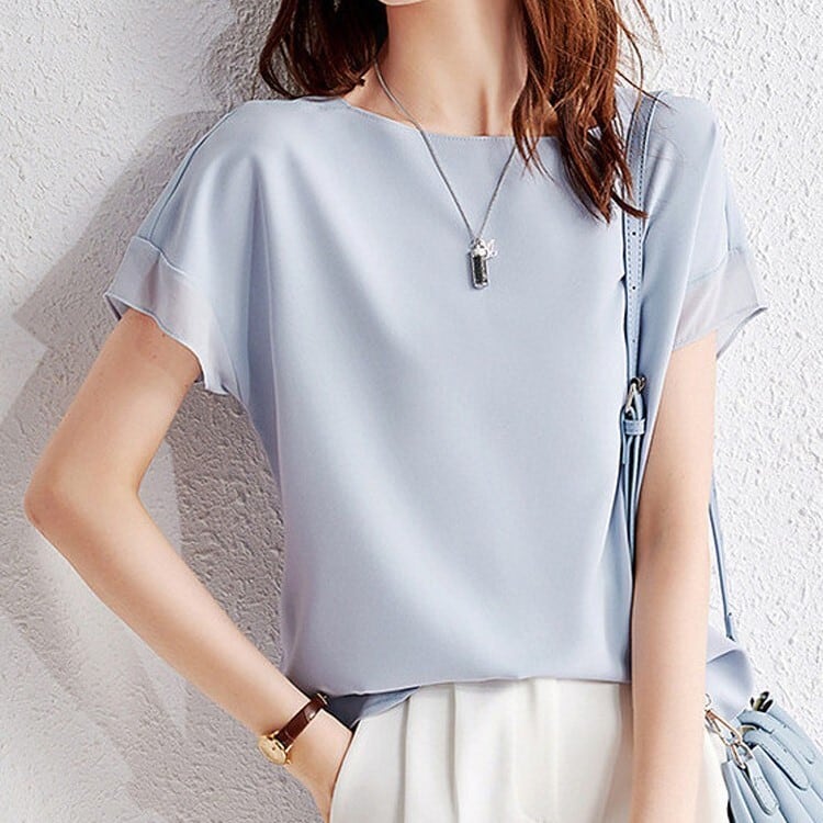 Sleeve mesh elegant chiffon shirt ( 5color )