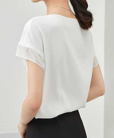 着用するだけで上品で大人可愛い雰囲気が漂うスリーブメッシュエレガントシフォンシャツ 。