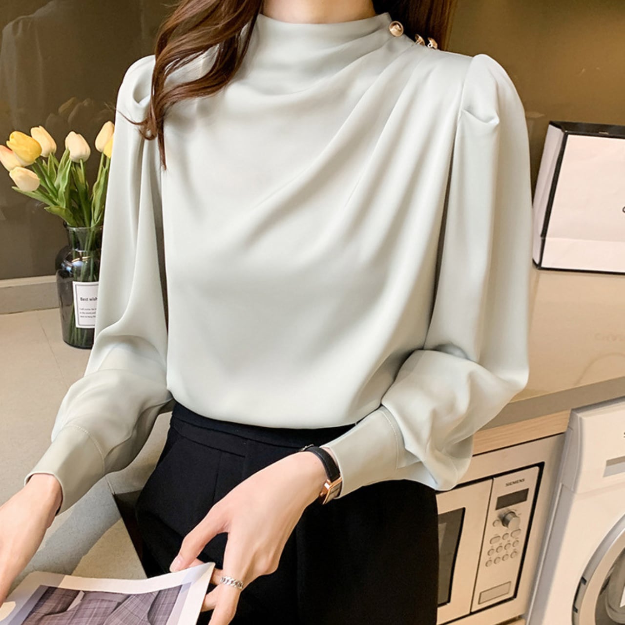 Shoulder pleats elegant chiffon blouse ( 5color )