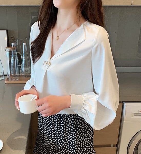 Suit collar elegant chiffon blouse 2023 秋の新作