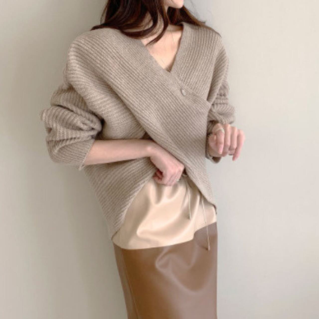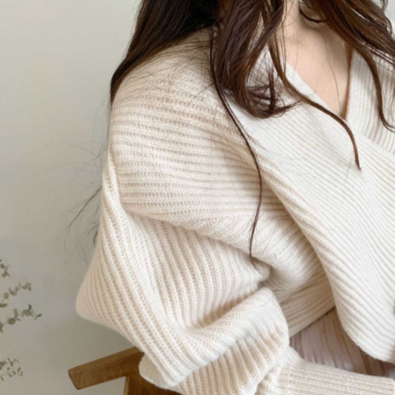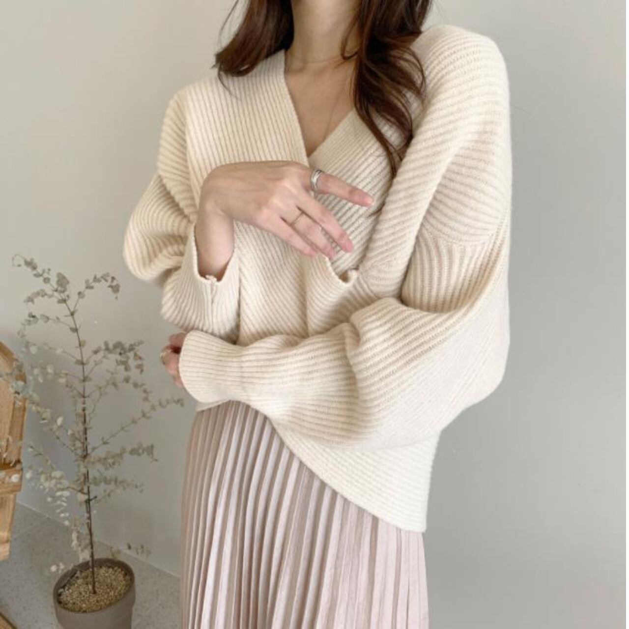 着用するだけで大人可愛い雰囲気が漂うVネックエレガントプルオーバーニット。