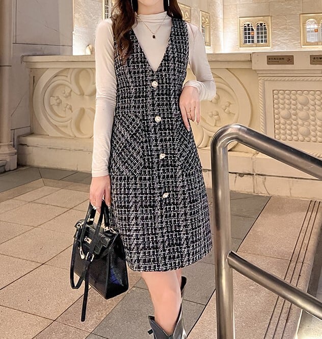 着用するだけでフェミニンな雰囲気が漂うVネックエレガントシングルブレストミドルドレス 。