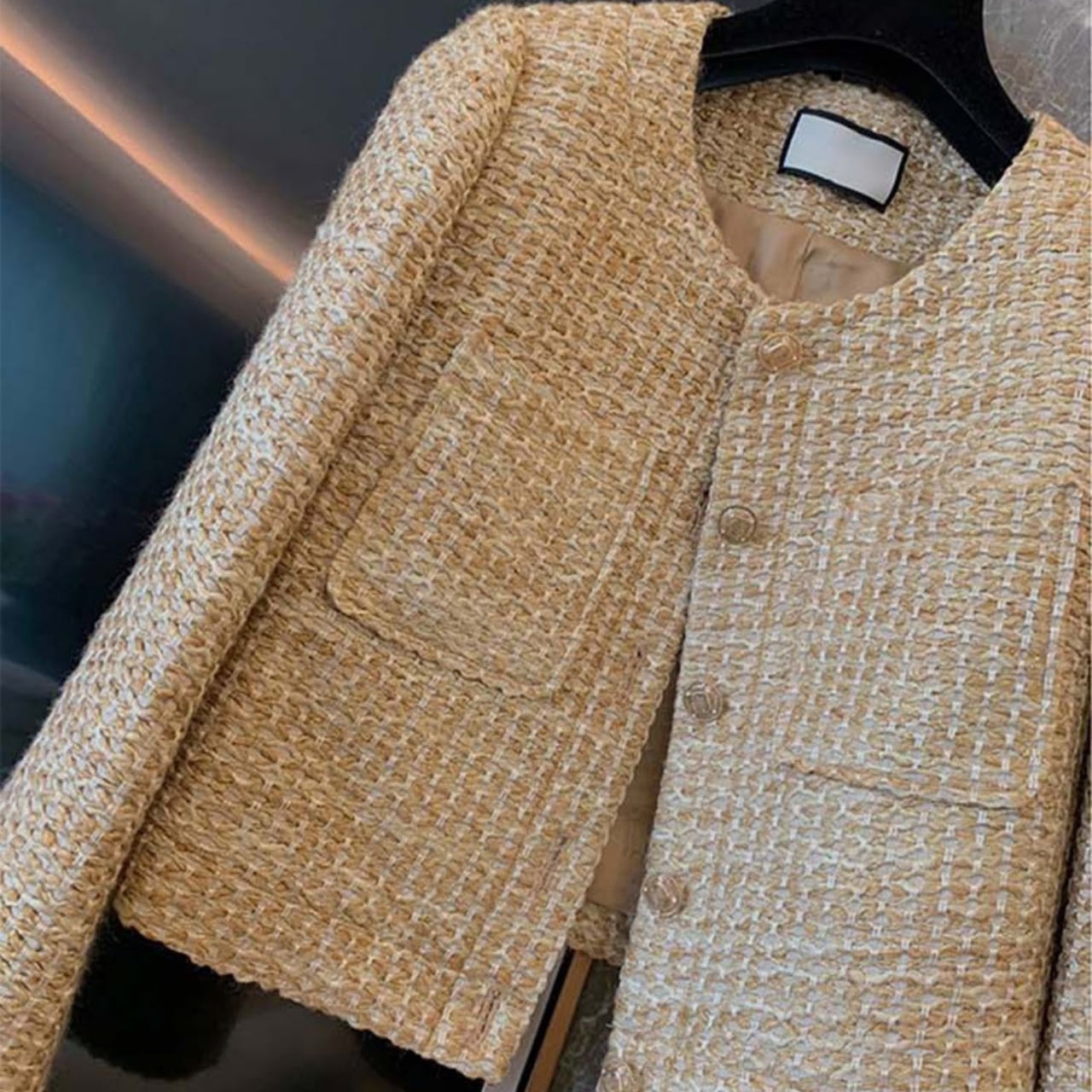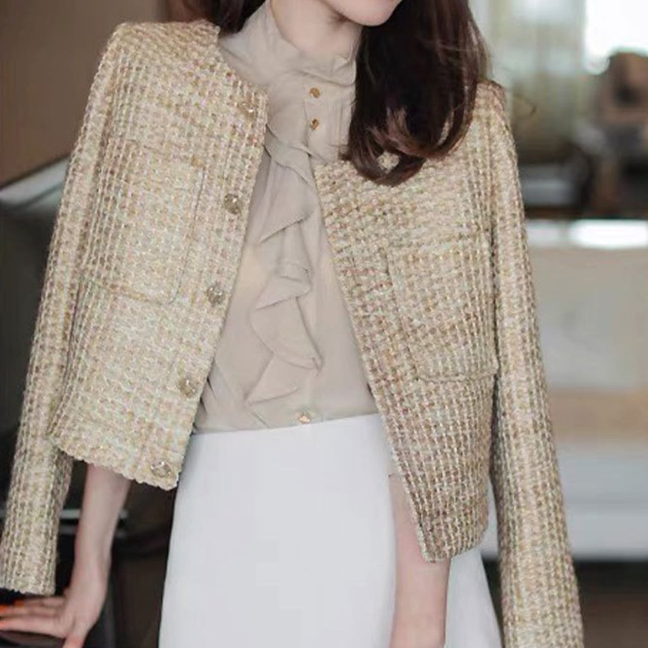 羽織るだけでフェミニンな雰囲気が漂うカラーレスエレガントツイードデザインショートジャケット。
