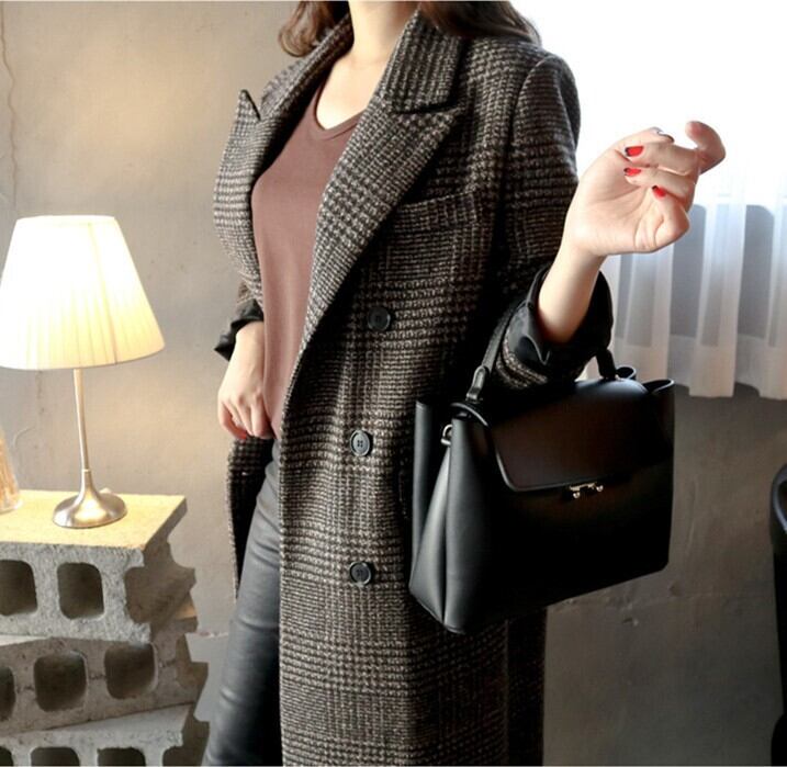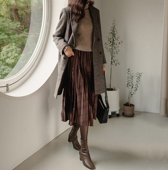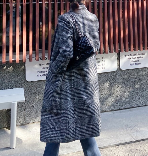 羽織るだけで上品でエレガントな雰囲気が漂うスーツカラーエレガントチェックミドルコート。