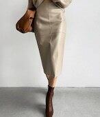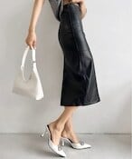 着用するだけでフェミニンな雰囲気が漂うハイウエストエレガントヒップカバーミドルレザーカート。