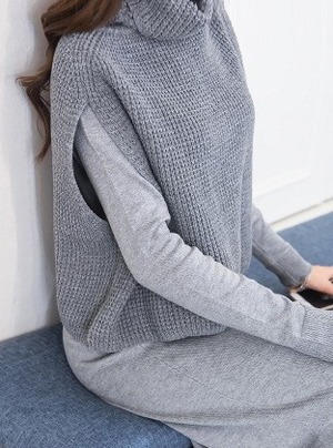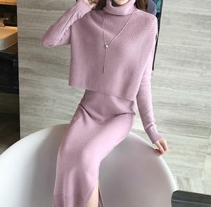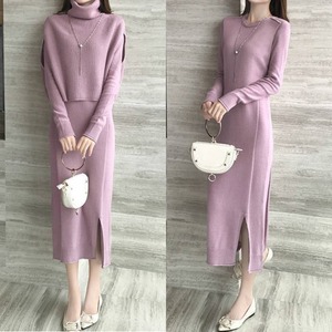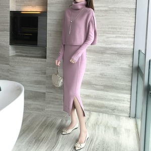 ハイネックケープニットとスリムフィットニットドレスのセット商品です。