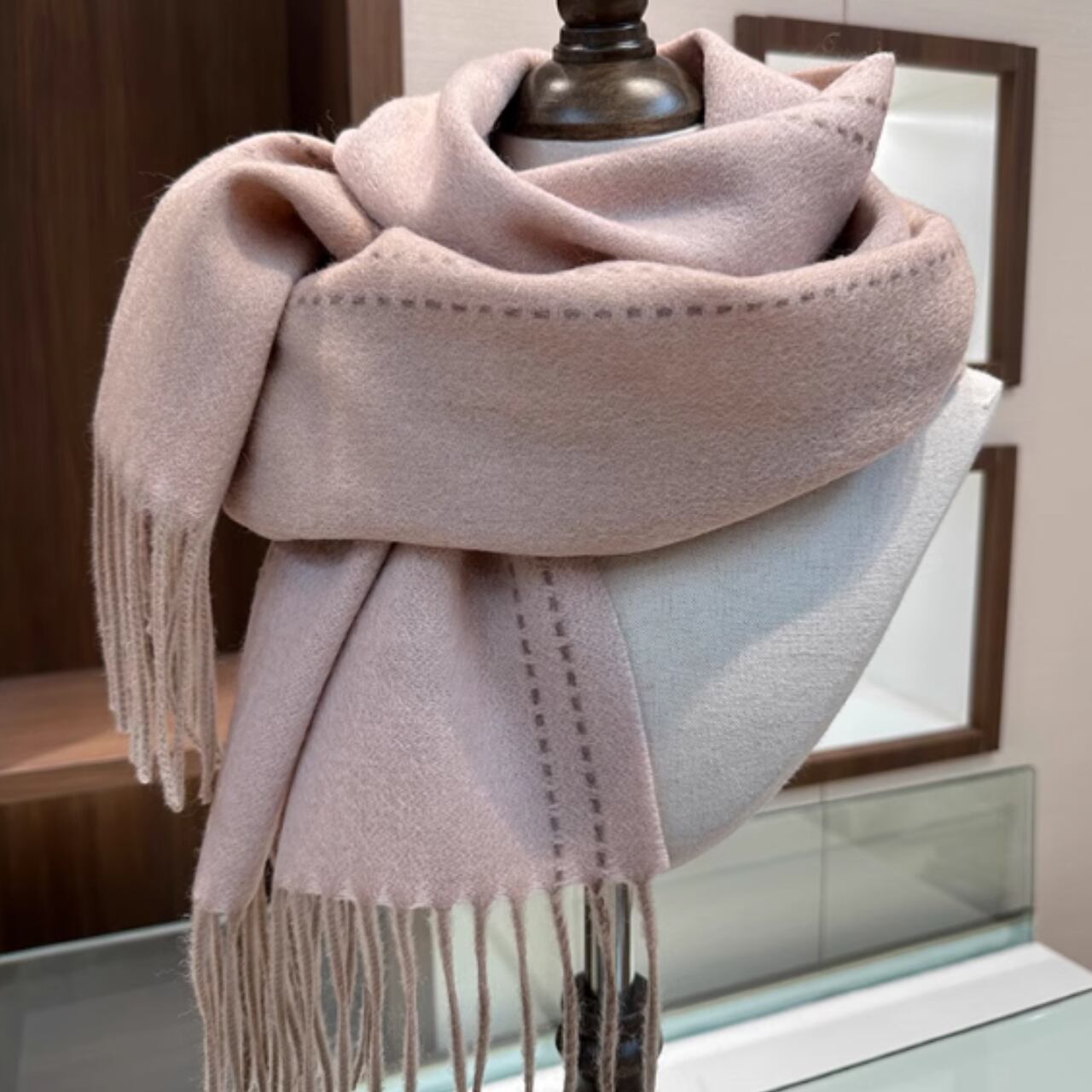 羽織るだけでフェミニンな雰囲気が漂うエレガントステッチマフラー。