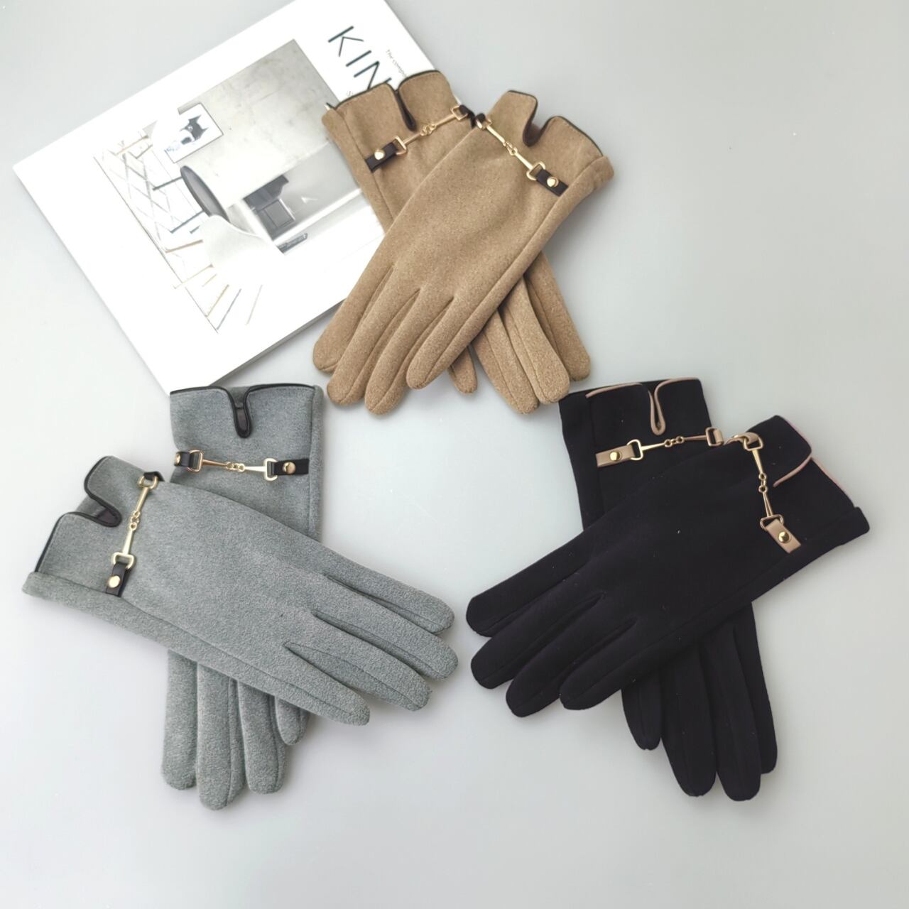 秋、冬のコーディネートを華やかに彩るバックルスタイルエレガントグローブ。