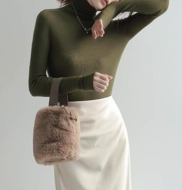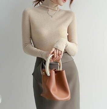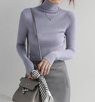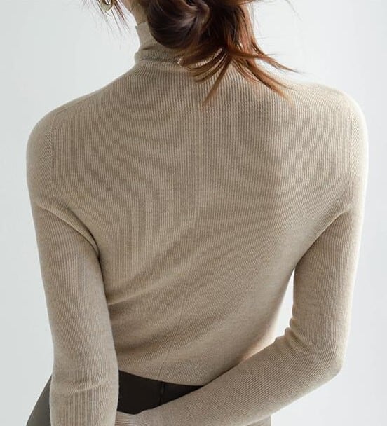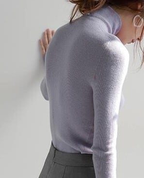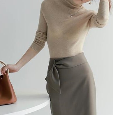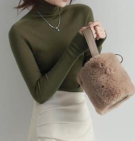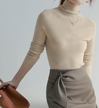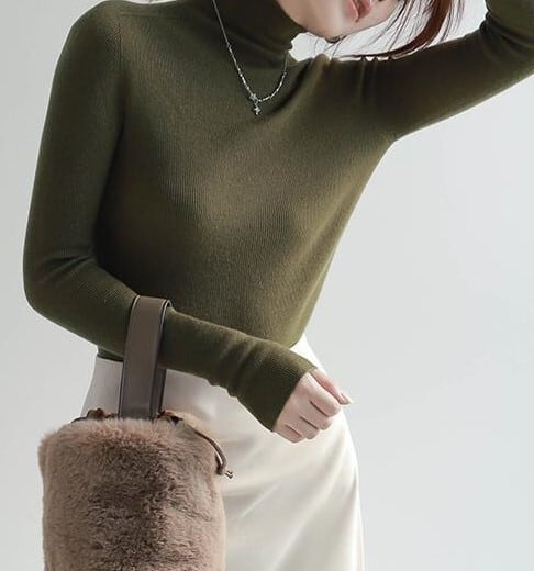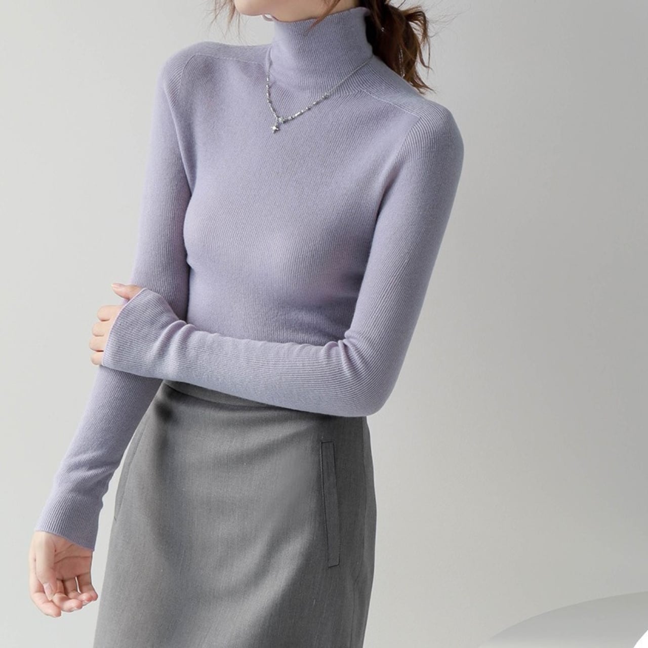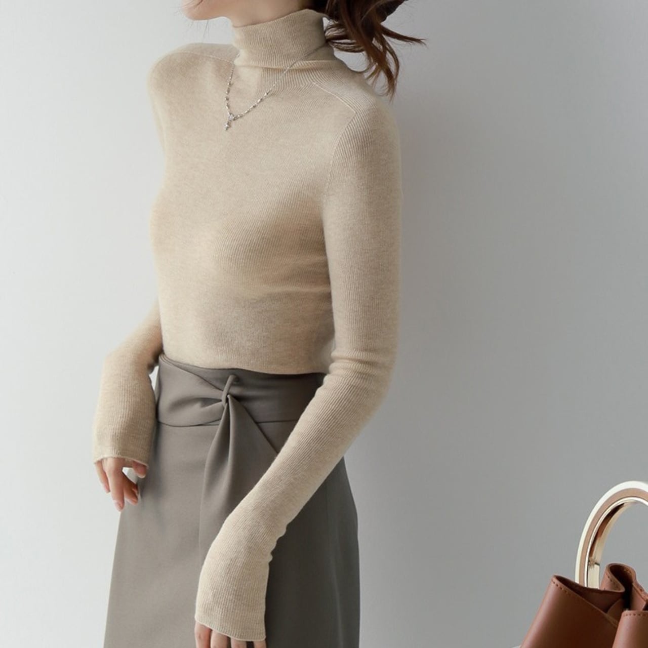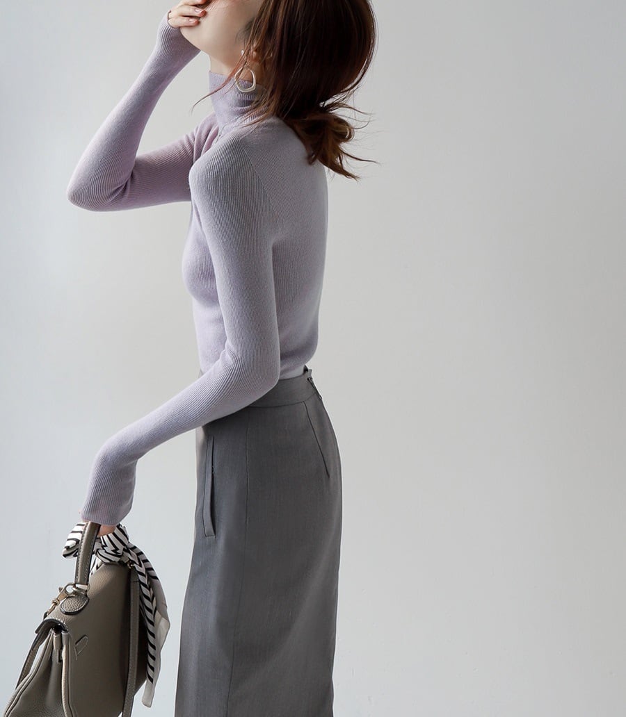 着用するだけでフェミニンな漂うハイネックエレガントスリムフィットニット 。
