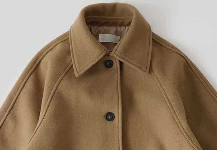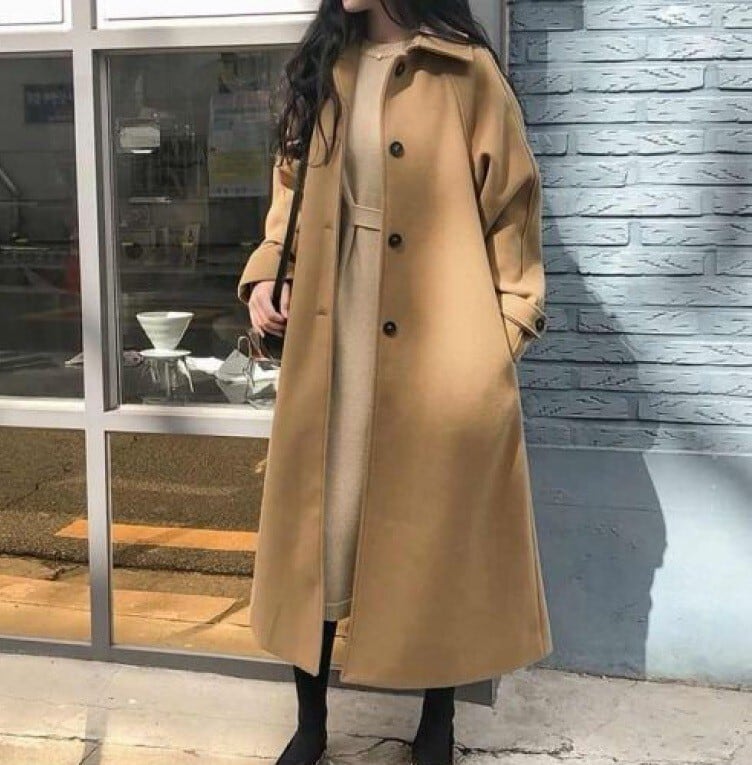 羽織るだけでフェミニンな雰囲気が漂うポロカラーエレガントルーズロングウールコート。