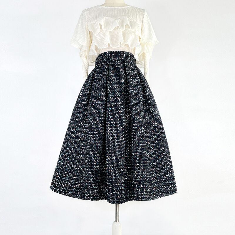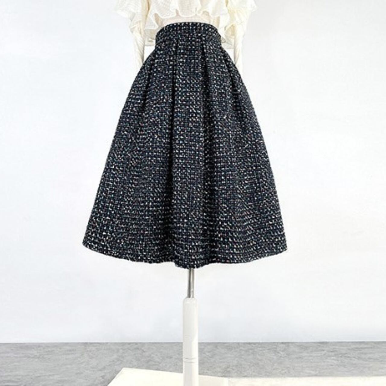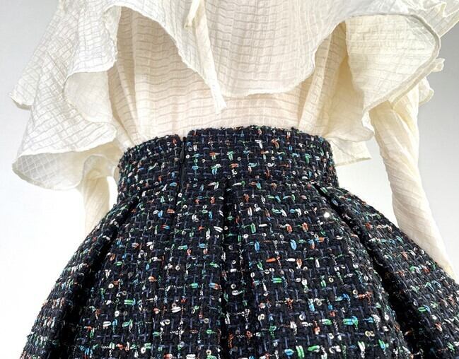着用するだけで上品でエレガントな雰囲気が漂うハイウエストエレガントスパンコールツイードミドルスカート。