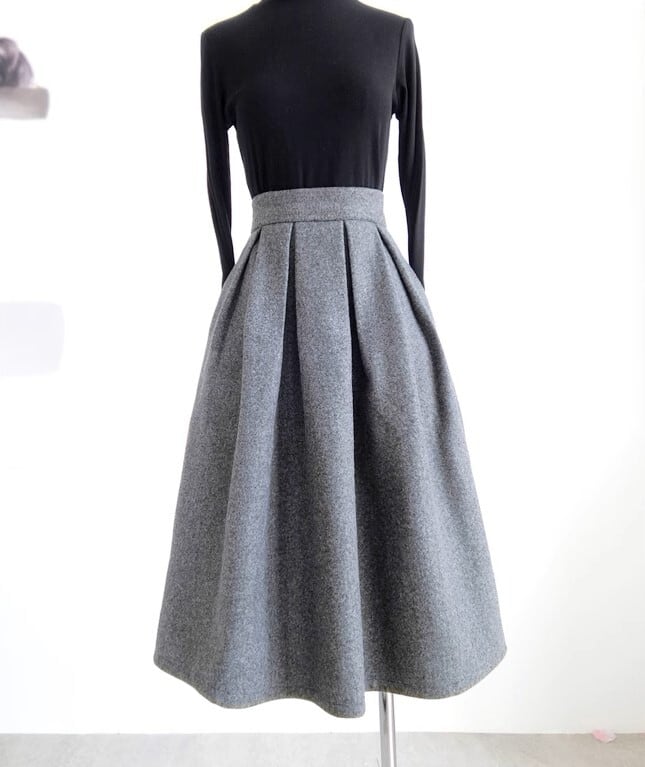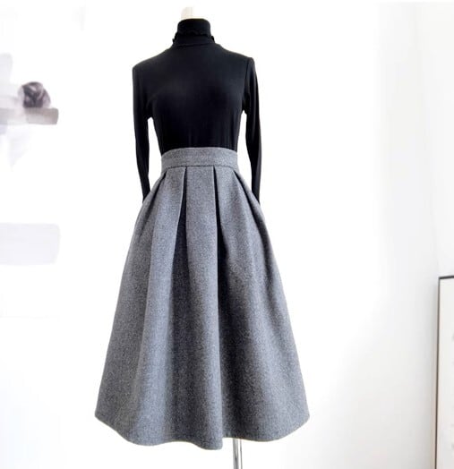 着用するだけで上品でエレガントな雰囲気が漂うハイウエストエレガントミドルウールスカート。