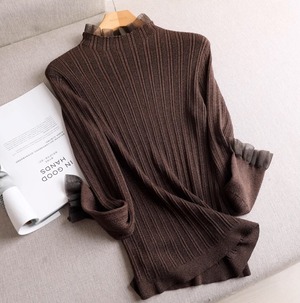 着用するだけでフェミニンな雰囲気が漂うハーフハイネックエレガントレースステッチニット。
