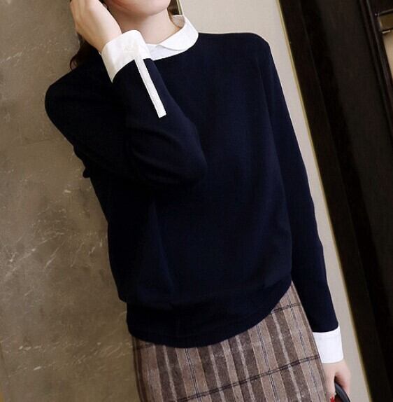着用するだけで大人可愛い雰囲気が漂うスモールカラーエレガントスリムニット。