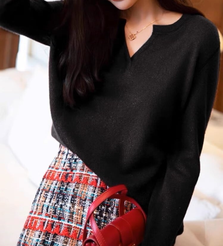 1枚着用するだけで大人可愛いコーデが完成するVネックエレガンベルベットニット。