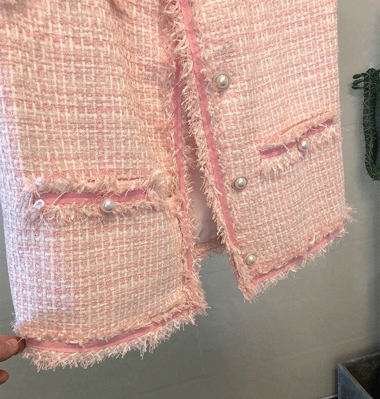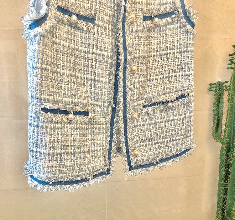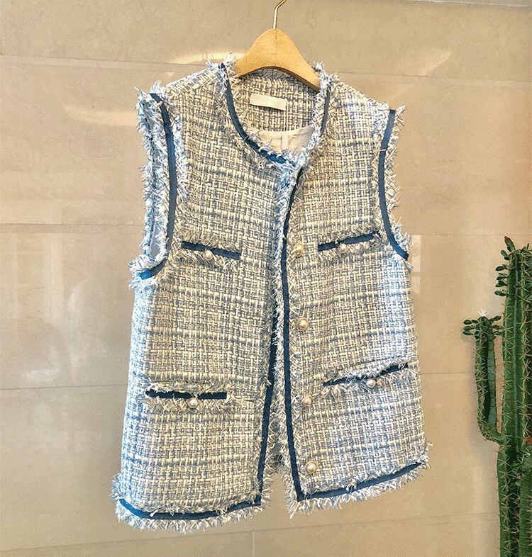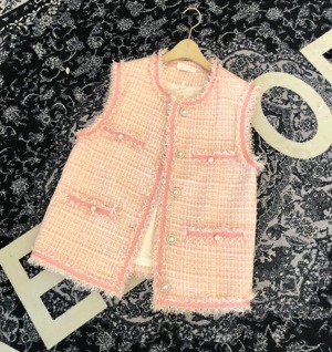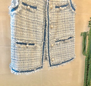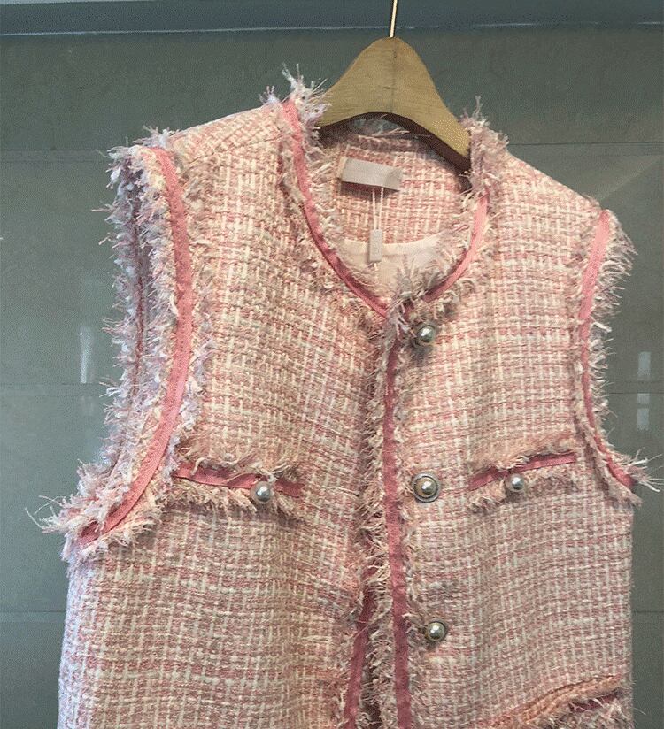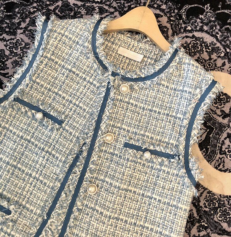 着用するだけで大人可愛い雰囲気が漂うエレガンフリンジトツイードジレ。