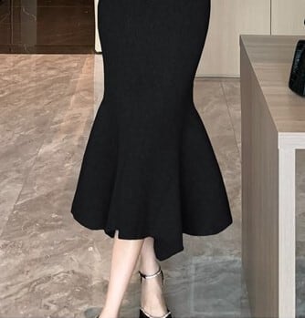 ハイウエスト、マーメイドデザインがスタイルを引き締めます。