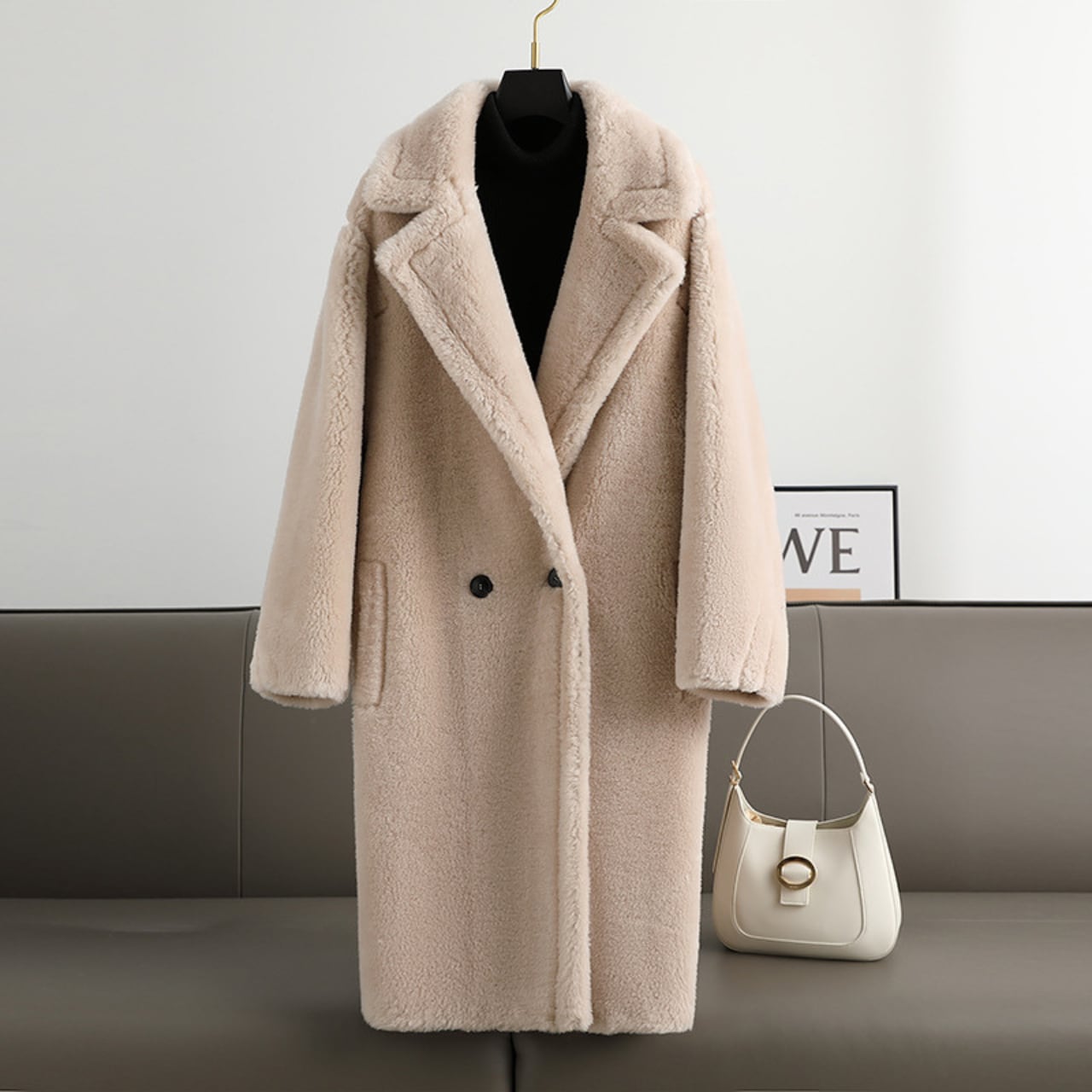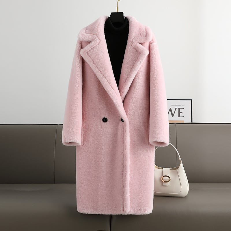 羽織るだけでエレガントな雰囲気が漂うスーツカラーエレガントロングボアコート。