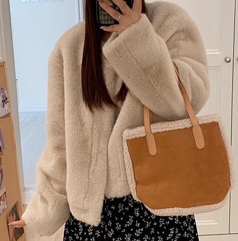 Collarless elegant fluffy short jacket ( 3color )