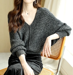 着用するだけで大人可愛い雰囲気が漂うVネックエレガントドルマンスリーブニット 。
