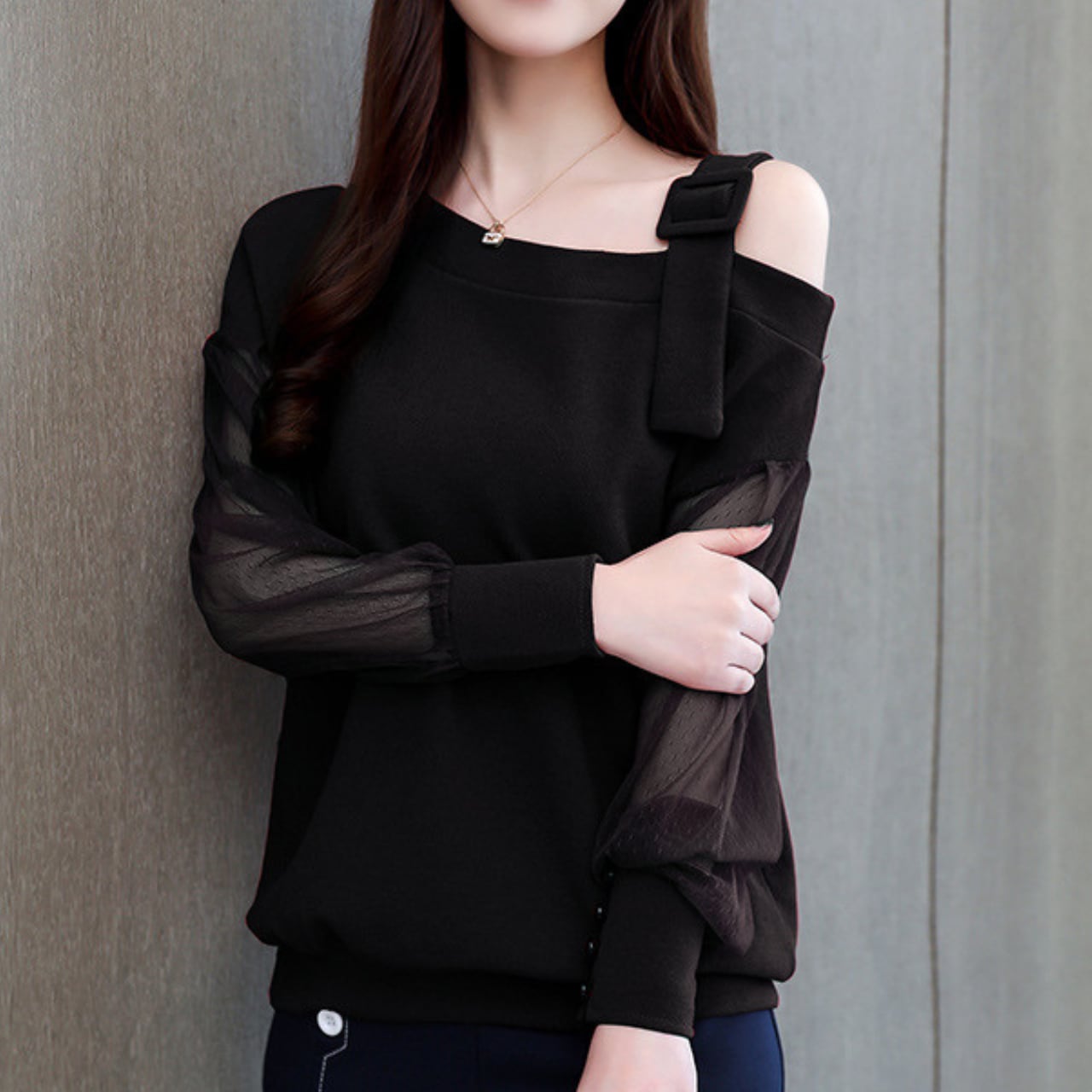 Off shoulder elegant sleeve mesh shirt ( 2color )