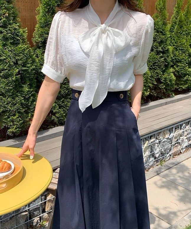 High waist elegant pleats middle skirt