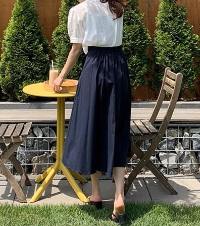 ハイウエスト、Aラインがスタイルを引き締めます。