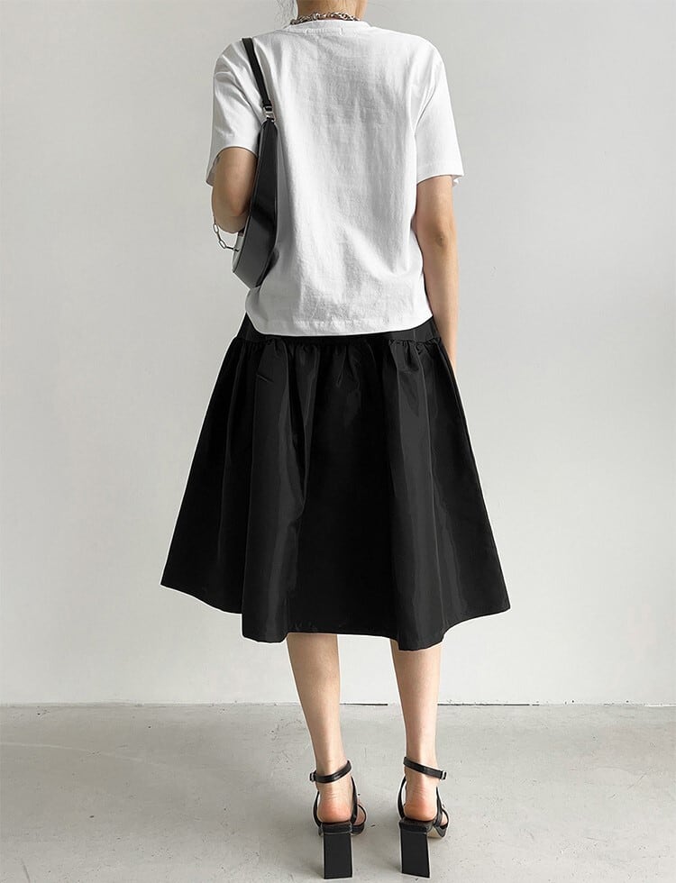 着用するだけでフェミニンな雰囲気が漂うハイウエストエレガントAラインパフスカート。