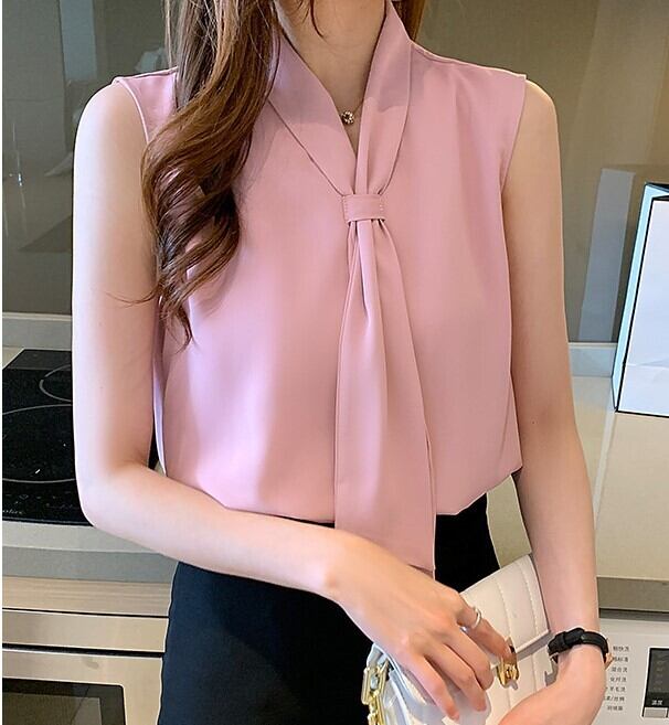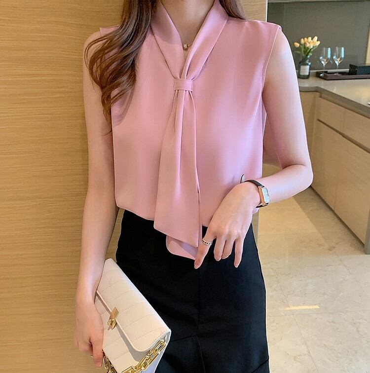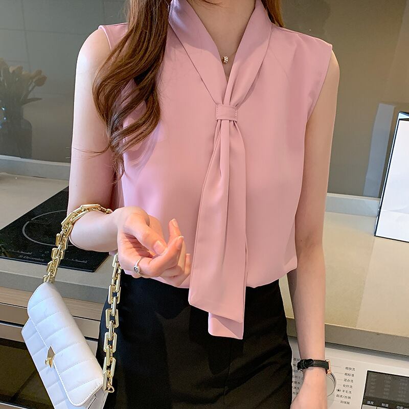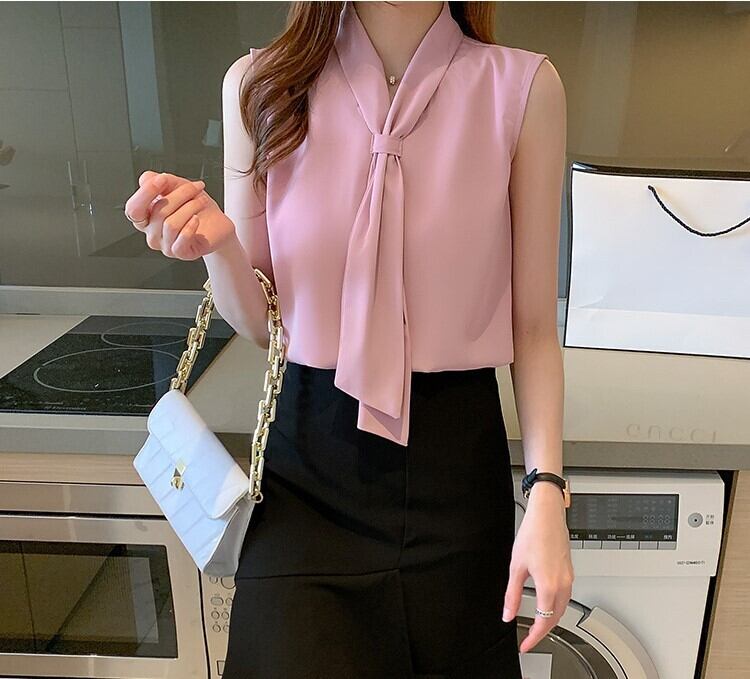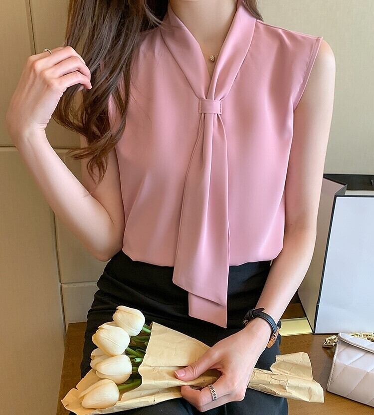 Chest tie elegant chiffon shirt