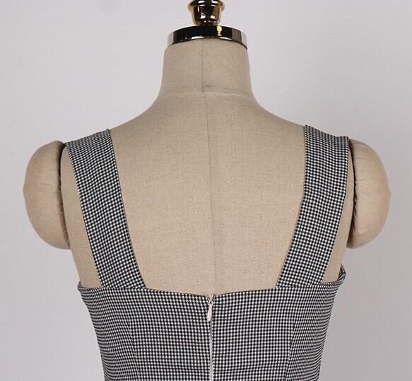 Sleeveless elegant slim fit check dress