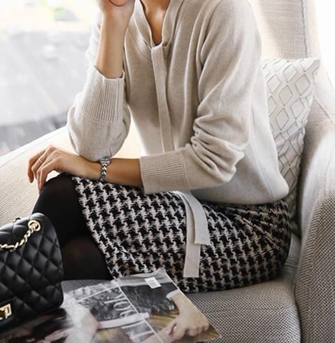 High waist elegant houndstooth hip cover wool skirt