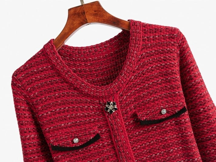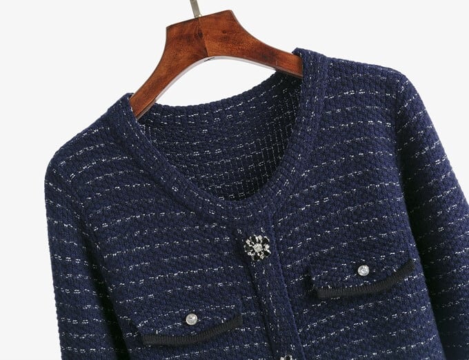 着用するだけでエレガントでフェミニンな雰囲気が漂うシングルブレストエレガントツイードデザインミドルドレス 。