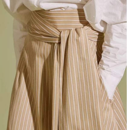 着用するだけでフェミニンな雰囲気が漂うハイウエストエレガントレースアップストライプスイングスカート。
