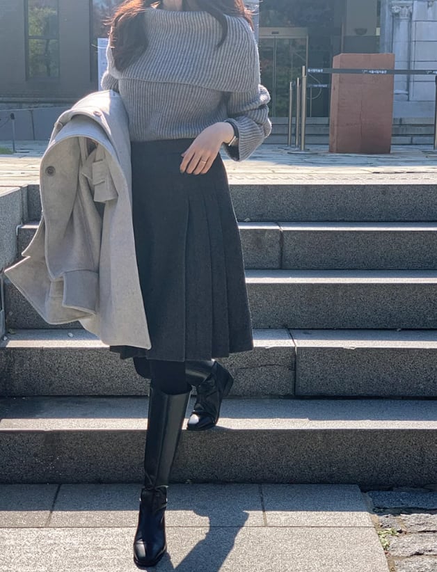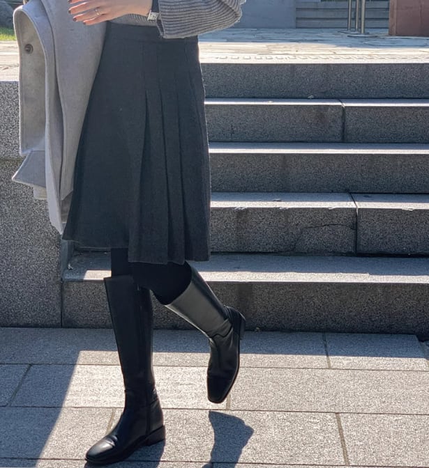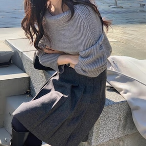 着用するだけで大人可愛い雰囲気が漂うハイウエストエレガントプリーツミドルウールスカート。