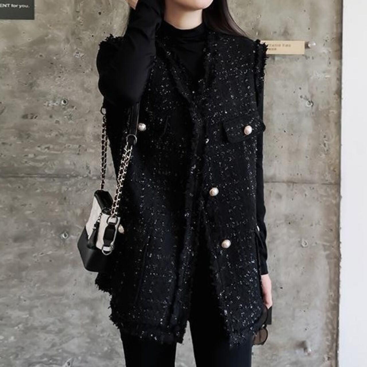 着用するだけで大人可愛い雰囲気が漂うエレガントスリムツイードジレ。