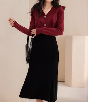 V neck elegant ruffle stitch knit cardigan
