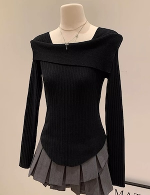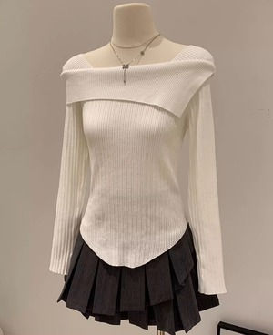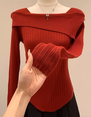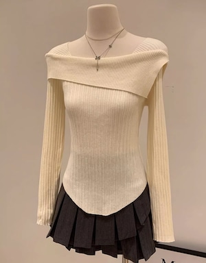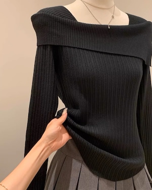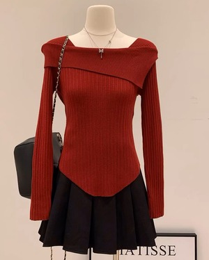 着用するだけで大人可愛い雰囲気が漂うアシンメトリックカラーエレガントスリムフィットニット。