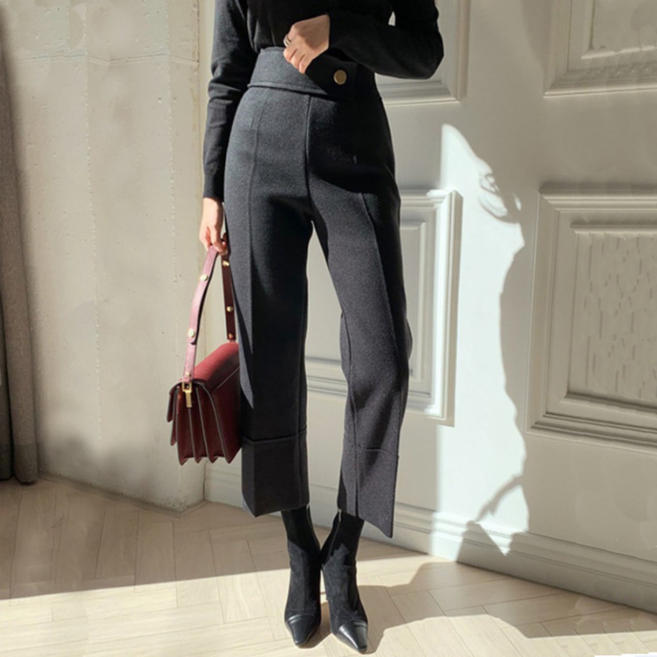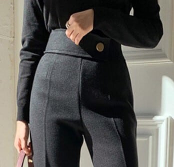 着用するだけでフェミニンな雰囲気が漂うハイウエストエレガントクロップドスリムウールパンツ。