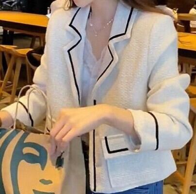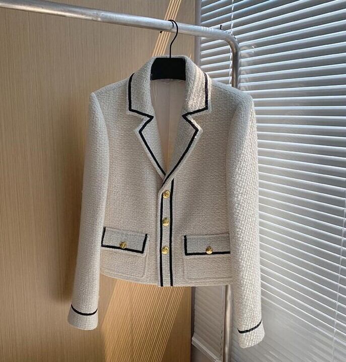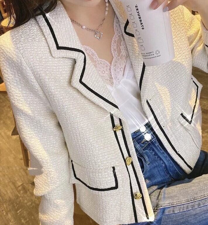 Suit collar elegant short tweed jacket
