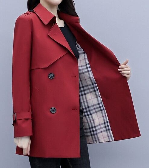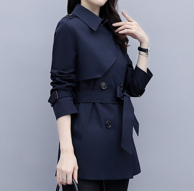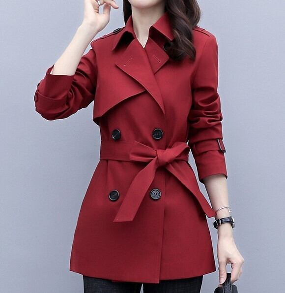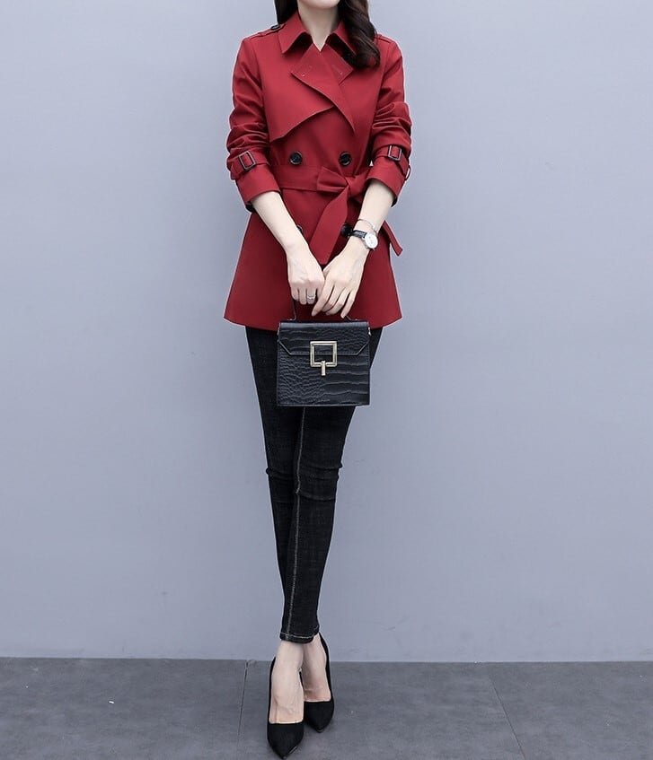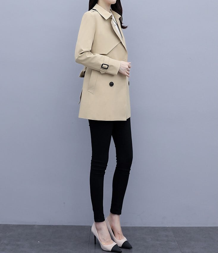 Suit collar elegant lace up short trench coat